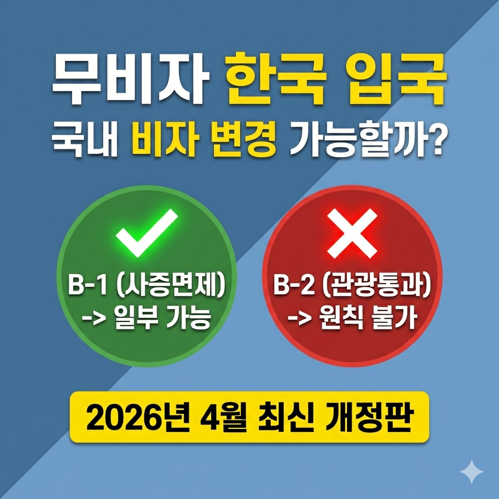 📌 핵심 요약: B-2(관광통과)는 원칙적으로 절대 불가(부득이한 사유 시 예외 심사), B-1(사증면제)은 일부 제한적으로 가능합니다. 취업 목적의 경우 대부분 출국 후 재신청이 필수적입니다.